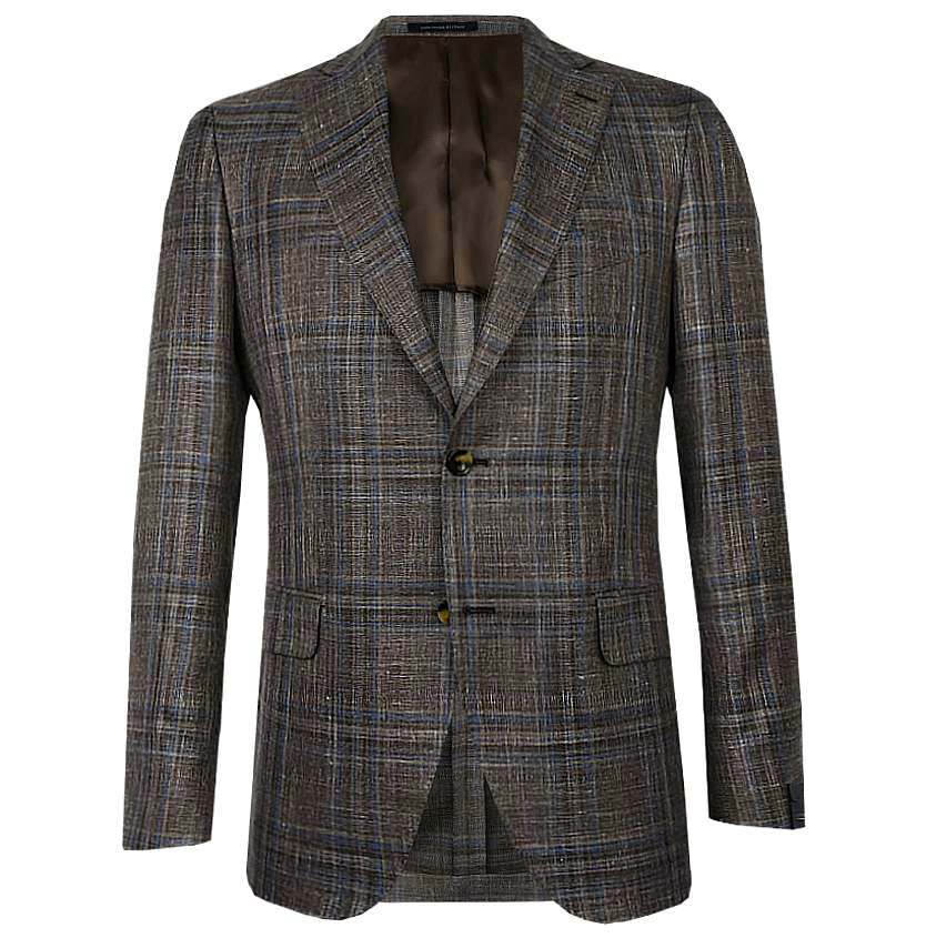 Пиджак в клетку из шерсти, шелка и льна